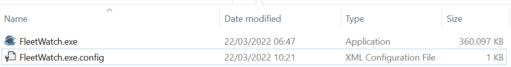 Note : Downloaded exe must not be renamed. When for some reason the downloaded file name cannot be used (e.g. the customer wants to roll out the client to their users as just “FleetWatch.exe” for whatever reason), then it is possible to specify the URL in a configuration file instead. The configuration file needs to be named the same as the exe file, only with “.config” added at the end and placed in the same folder as the exe file.